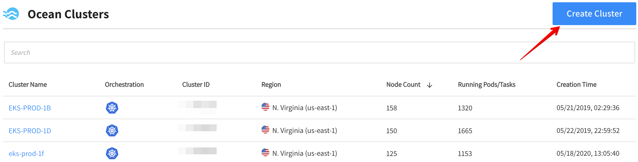 In this procedure, you will create an Amazon EKS cluster directly from the Spot Console and an Ocean object to manage the cluster worker nodes.